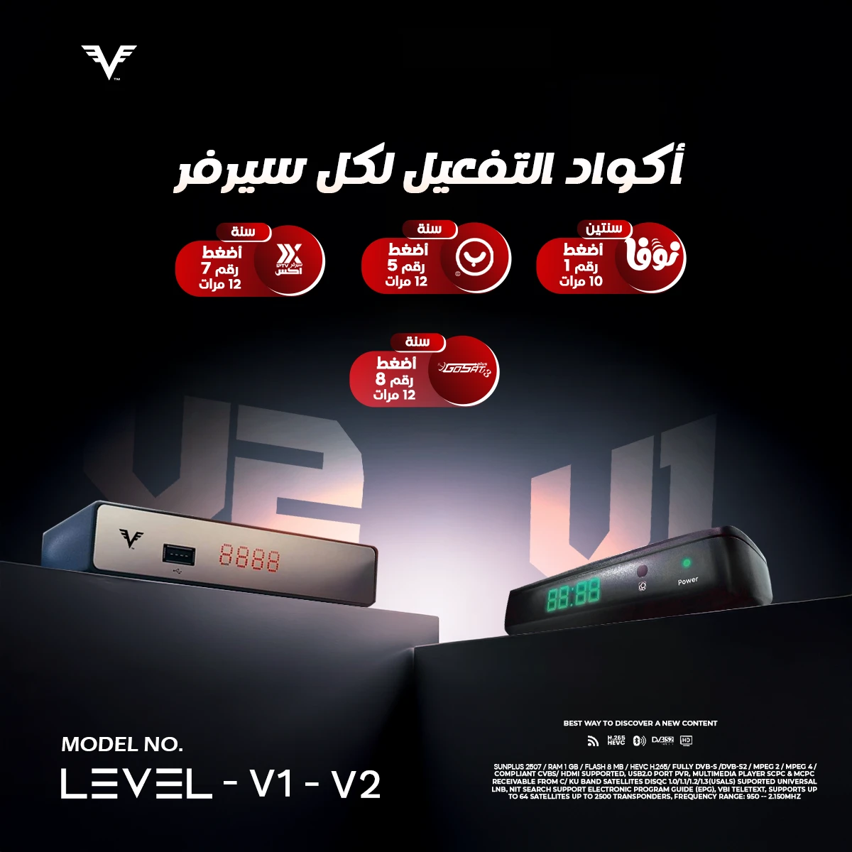 🎯 كـود تفعـيـل رسـيـفـرات ليفـل LEVEL V1 / LEVEL V2 🎯