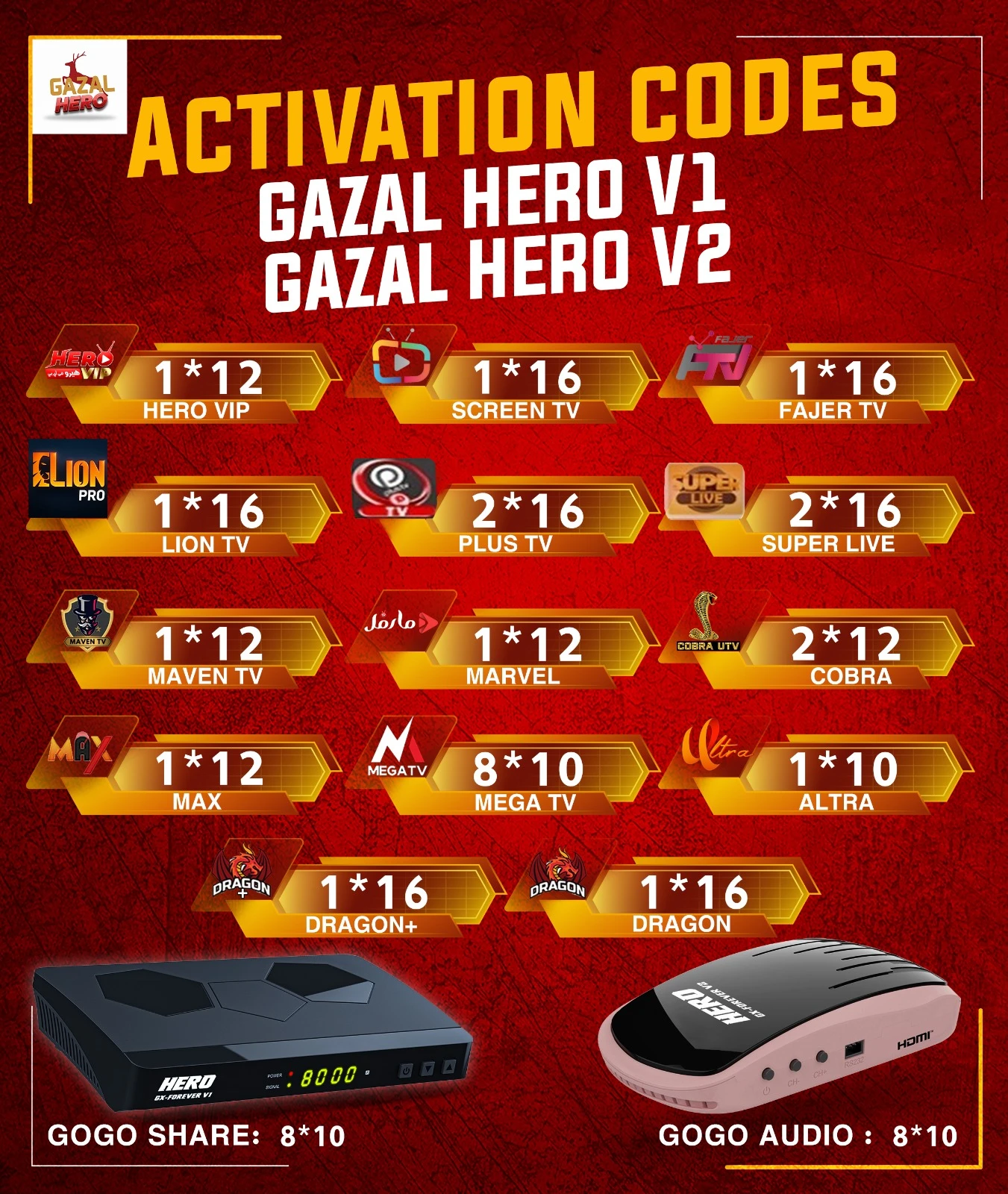اكواد تفعيل رسيفرات غزال هيرو Gazal Hero v1 ,v2
